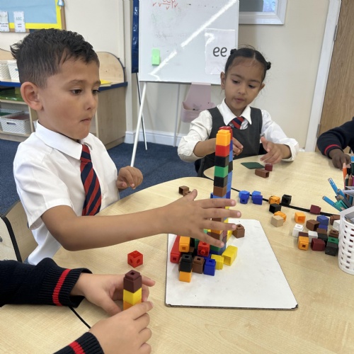 Stable Structures - We have been exploring how to build stable and unstable towers. Year 1 found out that a wide base makes structures stable.