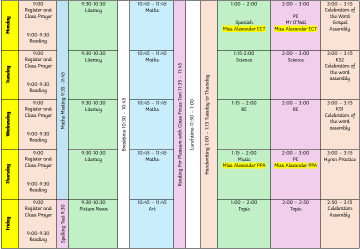 Our Class Timetable: